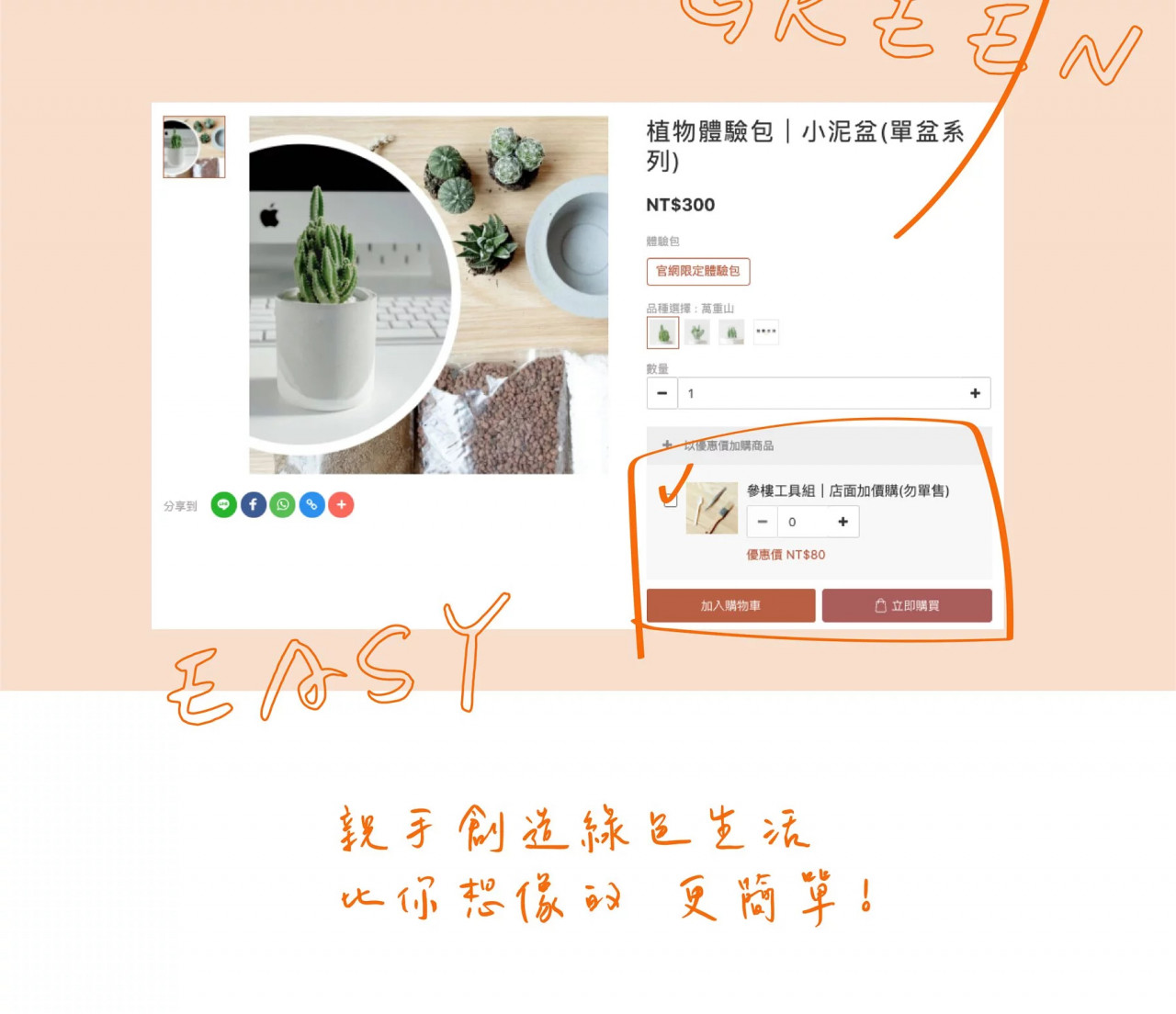 DIY 體驗組也有分「單株植體驗」與「多種植物組合」體驗唷!兩者不相同唷!